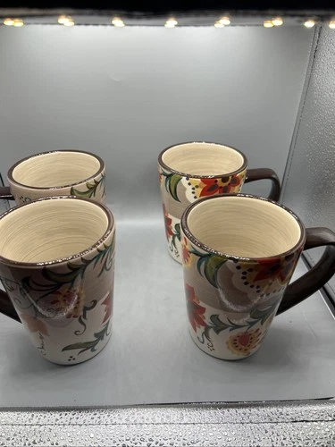 GalleryCarynthum Large Ceramic Coffee Mug Cup Set 4 Mugs Cups Floral Pattern
