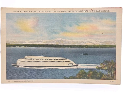 1947 VTG Linen Postcard ~ MV Kalakala Art Deco Style Steamer Puget Sound Seatlle