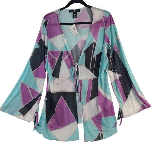 Ashley Stewart Womens Abstract Print Sheer Tie-Front Kimono Cardigan Size 18/20