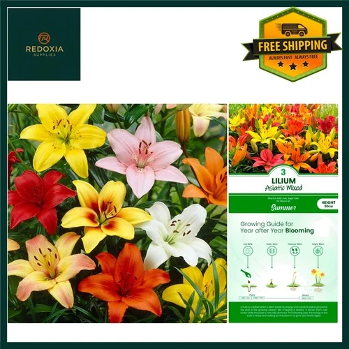 Vibrant Mixed Asiatic Lily Flower Bulbs Perennial Summer Blooms 3 Pack