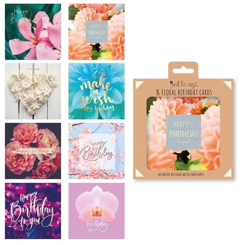 "Pack of 8 Mixed "Happy Birthday Wishes" Flower Cards for Adults,...