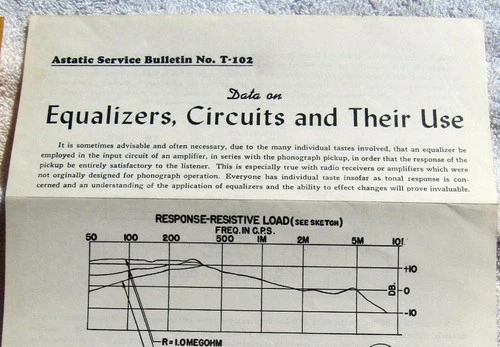 ASTATIC B-10 Tru-Tan Tone Arm INSTALLATION EQUALIZATION B-1 Crystal Cartridge