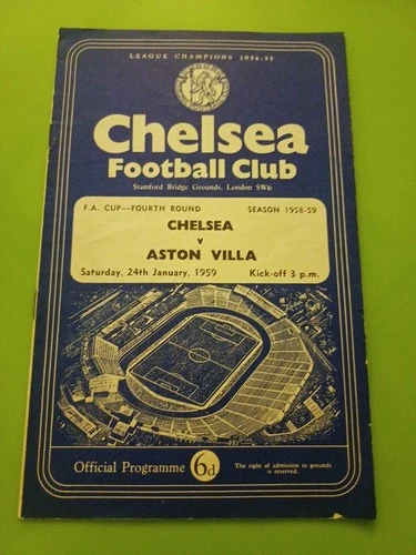 Chelsea V Aston VILLA FA CUP 4 Football Programme. 24.1.1959. AV Semi Finalists
