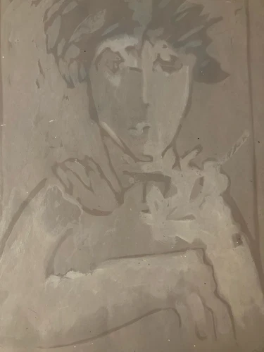 Beautiful oil painting paper portrait man 1970 art Christian ASTOR bust face