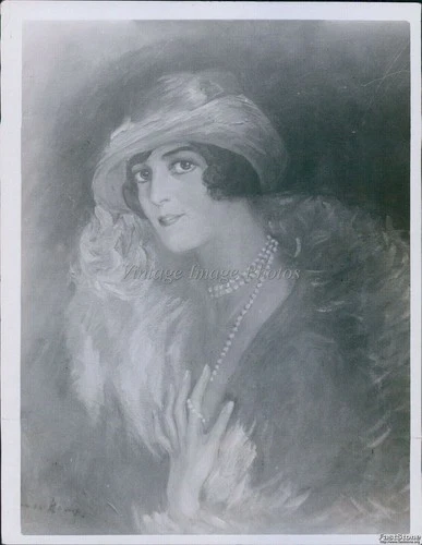 1925 Mrs Hl Astor Of Ny Artist Painting Fur Coat Pearls 6X8 Press Vintage Photo