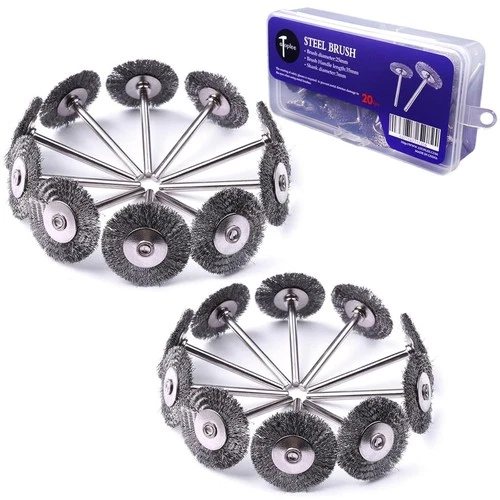 ATOPLEE Wire Wheel Brush Set,20pcs 1 inch/25mm Mini Wire Wheel with 3mm Round S