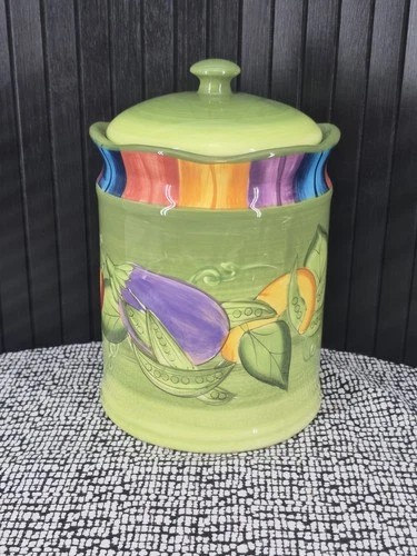 Gates Ware Ceramic Kitchen Canister Jar Green Vegetable Garden Aubergine Peas
