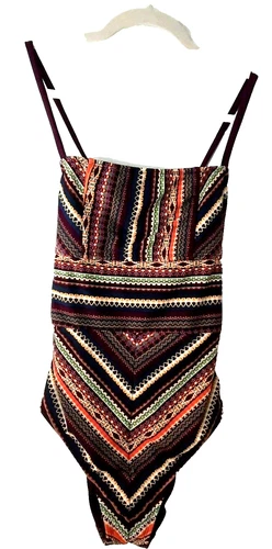 Women's Med Swimsuit Bathing Suit One Piece Tribal Aztec Lace Up Back Eggplant