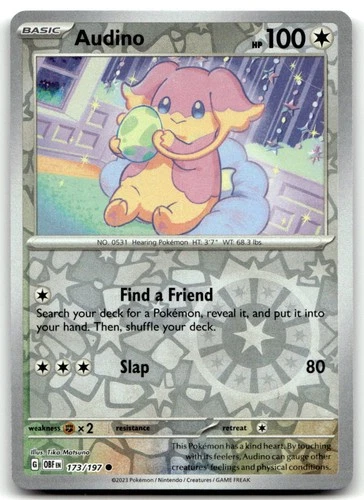 Audino 173/197 Common Obsidian Flames Pokemon Reverse Holo Near Mint