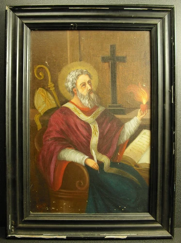 Saint Augustine of Hippo Oil on Canvas 19th 41cm The City of God St. Augustine