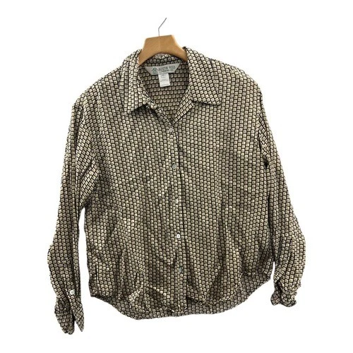 Austin Reed Silk Blouse Womens 10 Tan Black Geometric Square Button Down