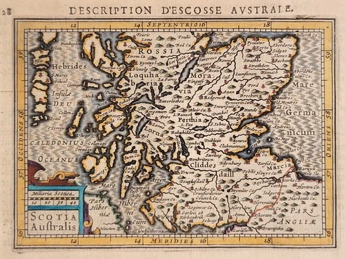 1616 Scotland Map Bertius Scotia Australis Hand Colored Dutch Atlas
