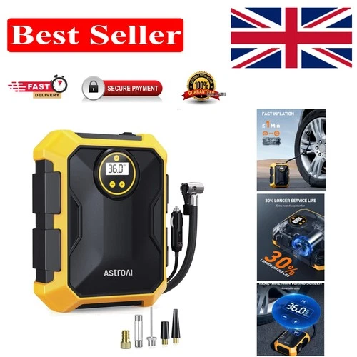 Portable 12V Air Compressor with Automatic Shut-off & Multi-Functional Nozzles
