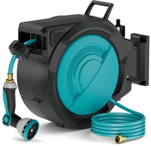 Retractable Garden Hose Reel 1/2" x 100 ft, Heavy Duty, Auto Rewind, 10 Spray