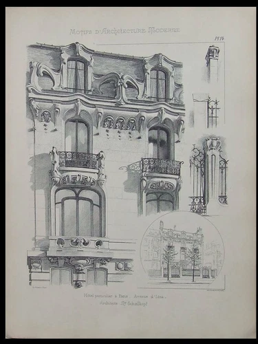 PARIS, 4 AVENUE D'IENA - ARCHITECTURE BOARD 1905 - SCHOELLKOPF, ART NOUVEAU