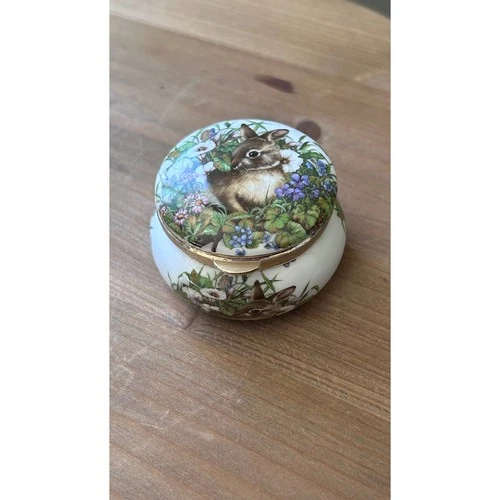Avondale Fine Bone China Bunny Rabbit Trinket Box Staffordshire England Hinged