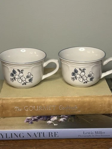 2 The Covington Edition Avondale Stoneware Flower Tea Cups Mugs Japan Blue White