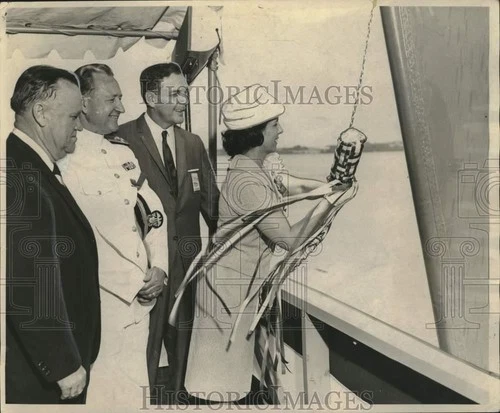 1964 Press Photo Mrs. John McKeithen at SS Gulf Merchant christening, Avondale