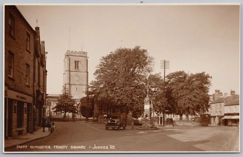 AXMINSTER Devon Motor Car in Trinity Square RP Postcard