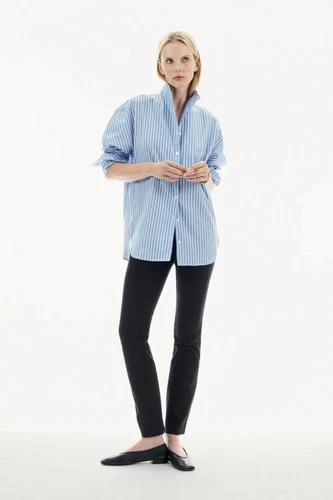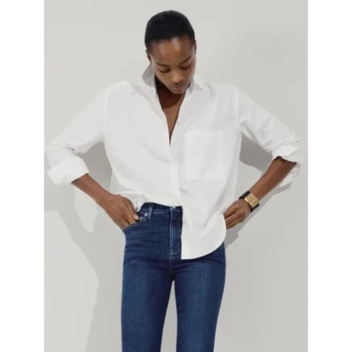 AYR The Tate Shirt Top Womens XS Blue Striped Preppy Oxford Career Classic