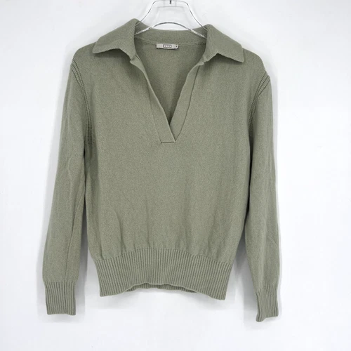AYR Cashmere Sweater Womens XS Polo V Neck Green Preppy Heritage Classic Simple
