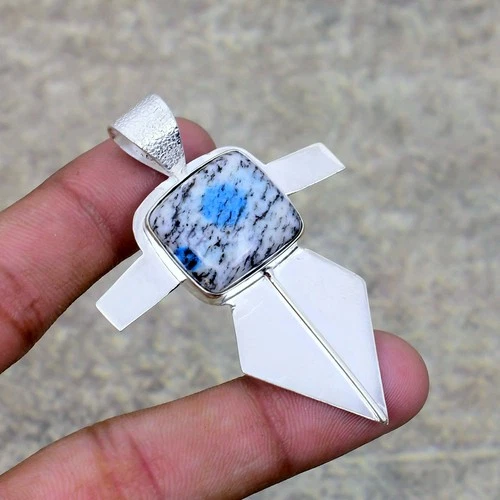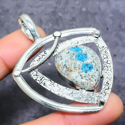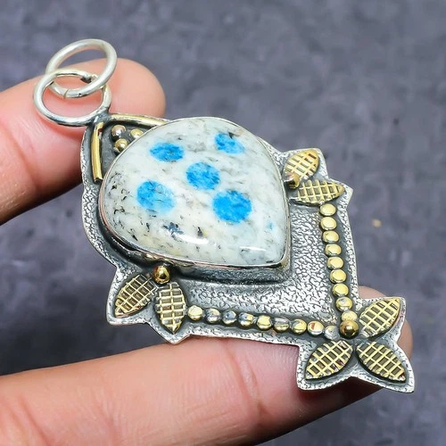 K2 Azurite Gemstone Handmade 925 Sterling Silver Jewelry Pendant 2.56"