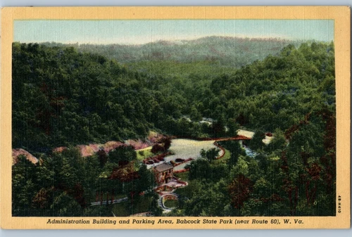 1930s Vintage Postcard Administration Building Babcock State Park Route 60 WVA