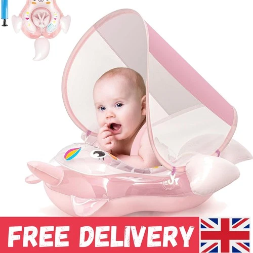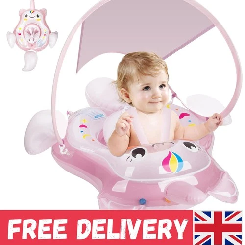 Pink Unicorn Baby Float with Canopy for 3-36 , Infant Swimming Pool Float