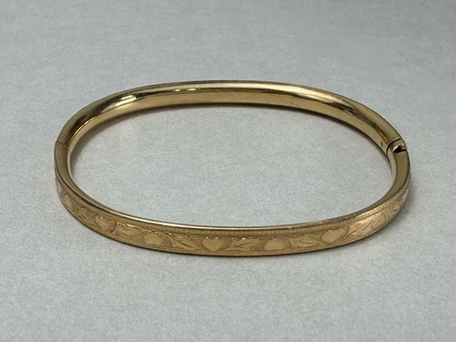 Vintage 14k Gold Filled Engraved Hearts Child Bangle Bracelet Small Signed HFB
