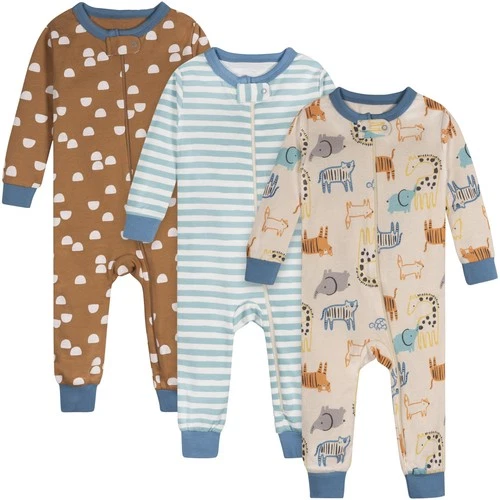 Baby Boys' 3Pack Snug Fit OnePiece Cotton Pajamas, Safari, 12 Months