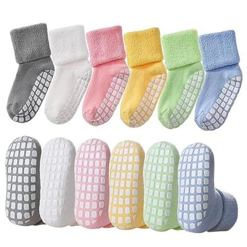 Baby Girls Boys Non Slip Socks with Grips Toddler Kids 1-3T 6 Pairs Color a