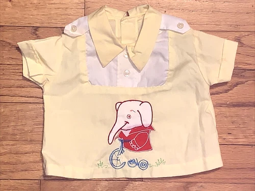 VTG Elephant Tricycle Embroidered Yellow Baby Boy Top/Shirt 3-6 Months?