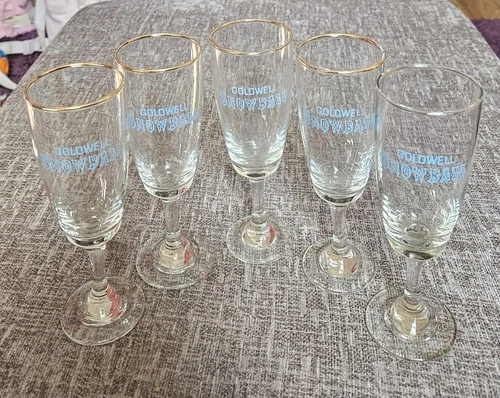 Vintage Goldwell Snowball Flute Glass, 1960s, 1970s, Set of 5