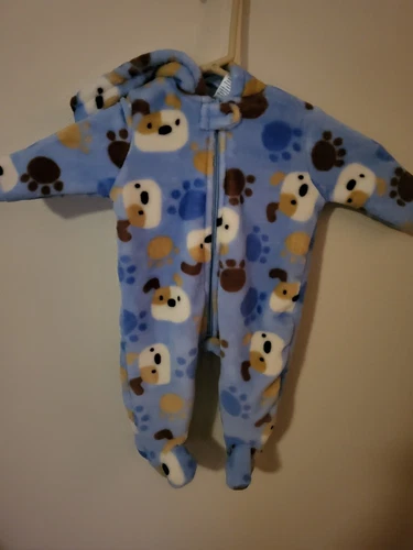 Baby Fleece Size 0-3 Months Blue With Puppies Soft Fill Zip Hooded Flip Cover H
