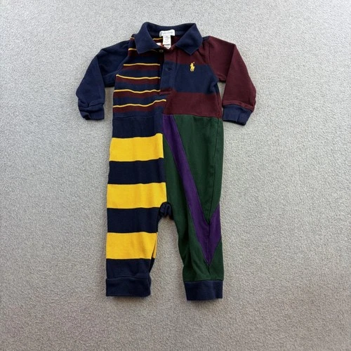 Ralph Lauren Coverall Boys 0-3 Months Multicolor Stripe Polo Rugby One Piece
