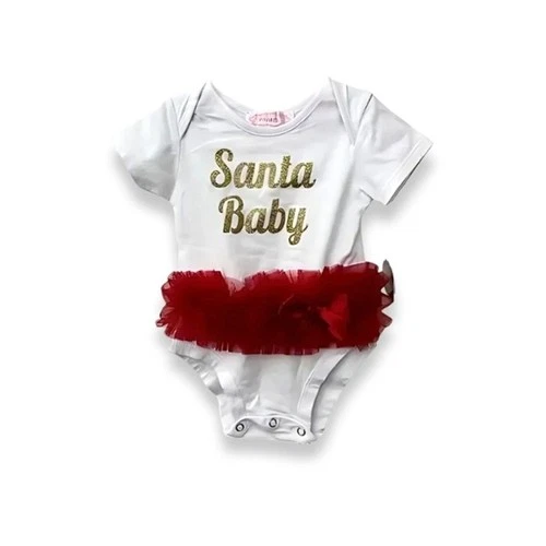 Popatu Santa Baby One Piece Tutus Crew Neck Short Sleeves White Red 18 Mos NWT