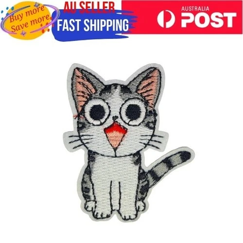 Tabby Cat with Big Eyes Iron on Patch Meow Pet Big Round Eyes 6.5×5.4×0.1cm(1.3g