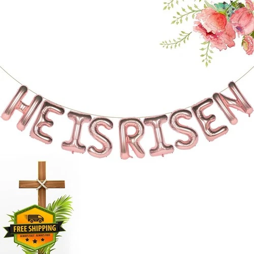 Youchicnow Rose Gold He is Risen Letter Balloons 16 Inch Easter Banner Church...