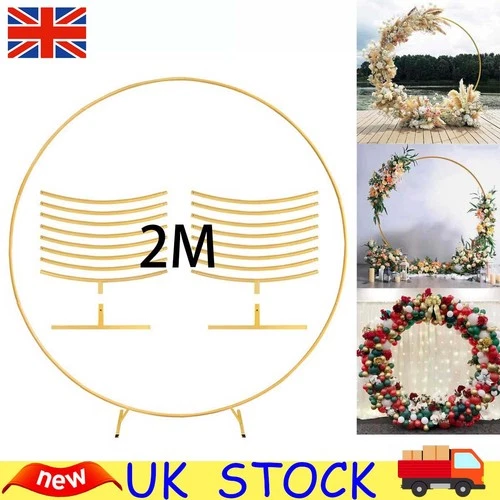 2M Round Hoop Balloon Arch Backdrop Flower Gold Display Stand Frame Wedding ,UK