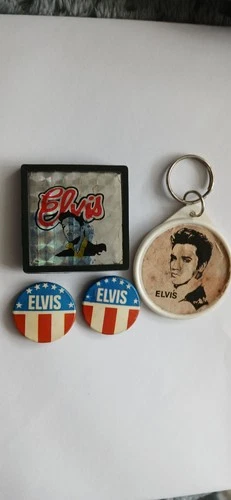 Elvis Presley Vinrage 70s Plastic Sticker Badge & Keyring + 2 25mm Badges
