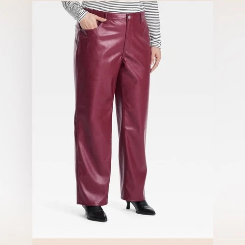 NWT Universal Thread Mid Rise 90s Baggy Faux Leather Pants Red Wine Size 24