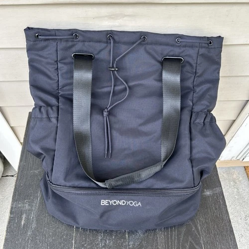 Beyond Yoga Black Nylon Backpack Gym Yoga Bag Drawstring/Snap Closure Pockets