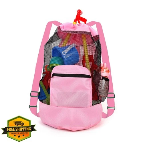 Anandming Pink Mesh Beach Toy Bag Backpack Waterproof Swim Sand Bag