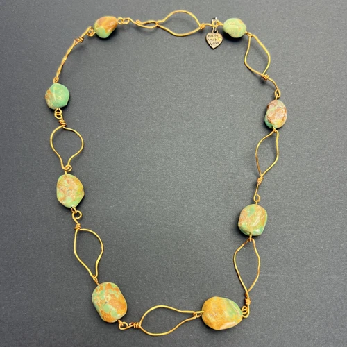 Copper Variscite Artisan Wire Station Necklace Handcrafted Made with Love 19”