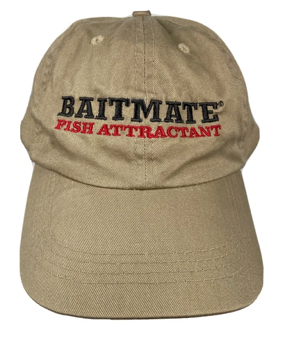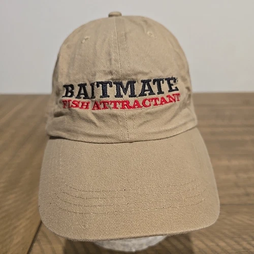 Baitmate Fish Attractant Adjustable Dad Hat Cap Strapback Khaki Embroidered