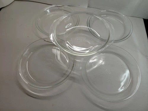 Set of 5 VTG Pyrex Clear Glass - (4) 209 Pie Pans & (1) 503 Oven Roaster Dish