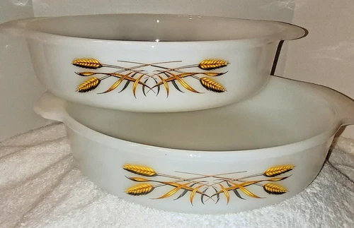 Anchor Hocking Fire King USA Wheat Pair of 8" Ovenware Cake Pans #450 Mint