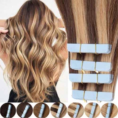 Balayage 60PCS Tape In Hair Extensions Real Remy Human Hair Skin Weft Thick Icy