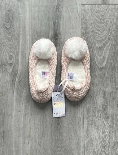 Debenhams Chenille Pom Pom Ballet Slippers Size 4 Uk Pink Brand New Free P&P