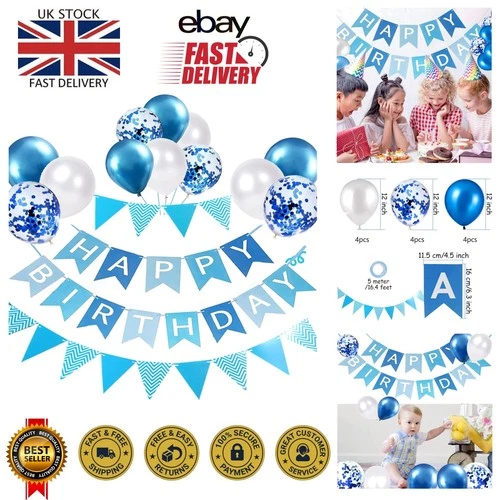 Reusable Blue Birthday Balloons & Bunting Banner - All-in-One Decor Solution
